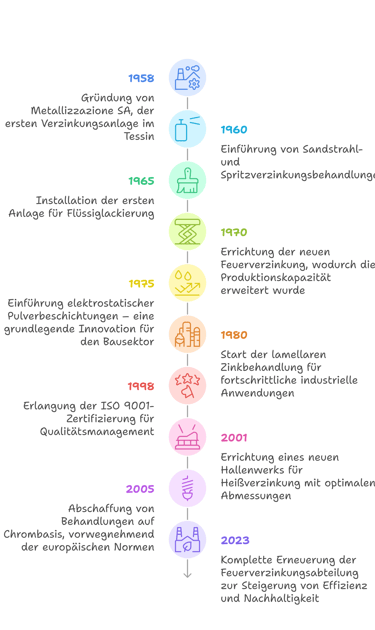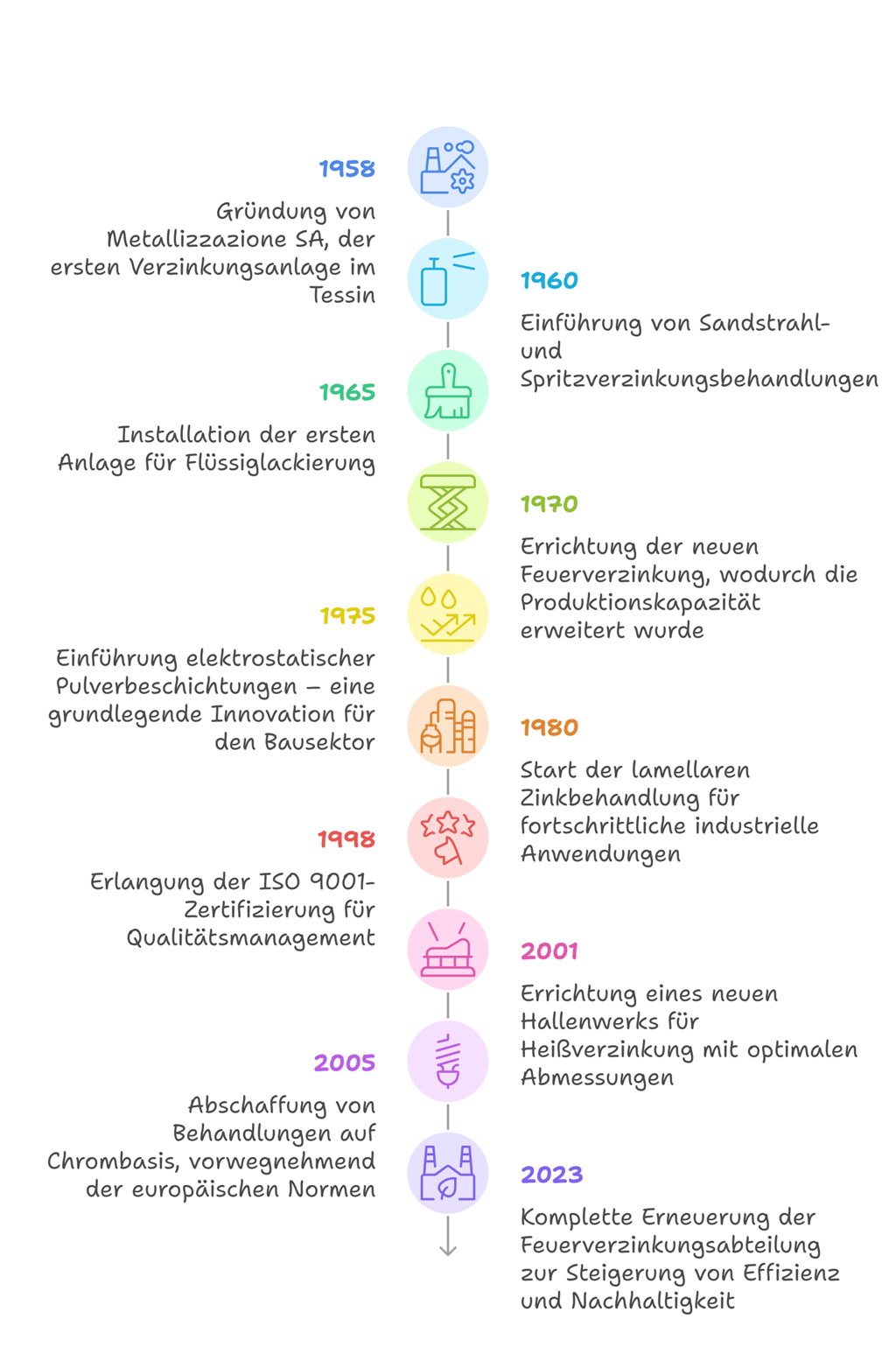 Das 1958 gegründete Unternehmen war der erste und bis heute einzige Verzinkungsbetrieb im Kanton Tessin. Unser Unternehmen bietet massgeschneiderte Lösungen und verbindet lateinische Freundlichkeit mit Schweizer Qualität.
